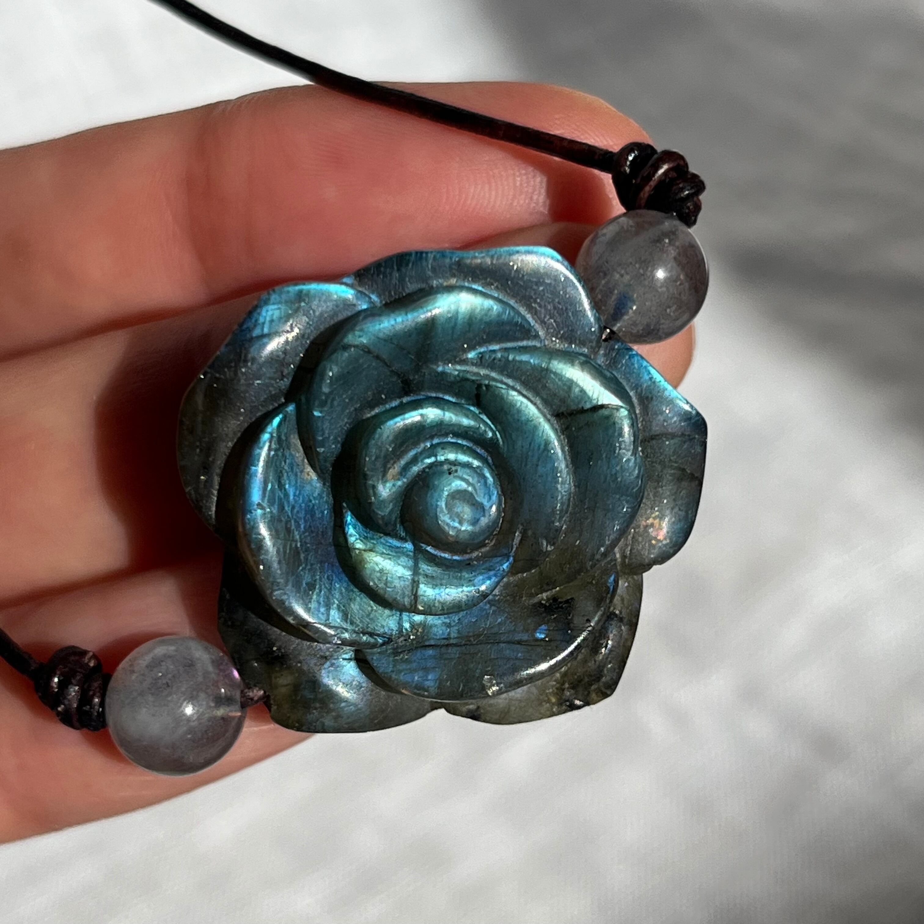 ラブラドライト薔薇ペンダント